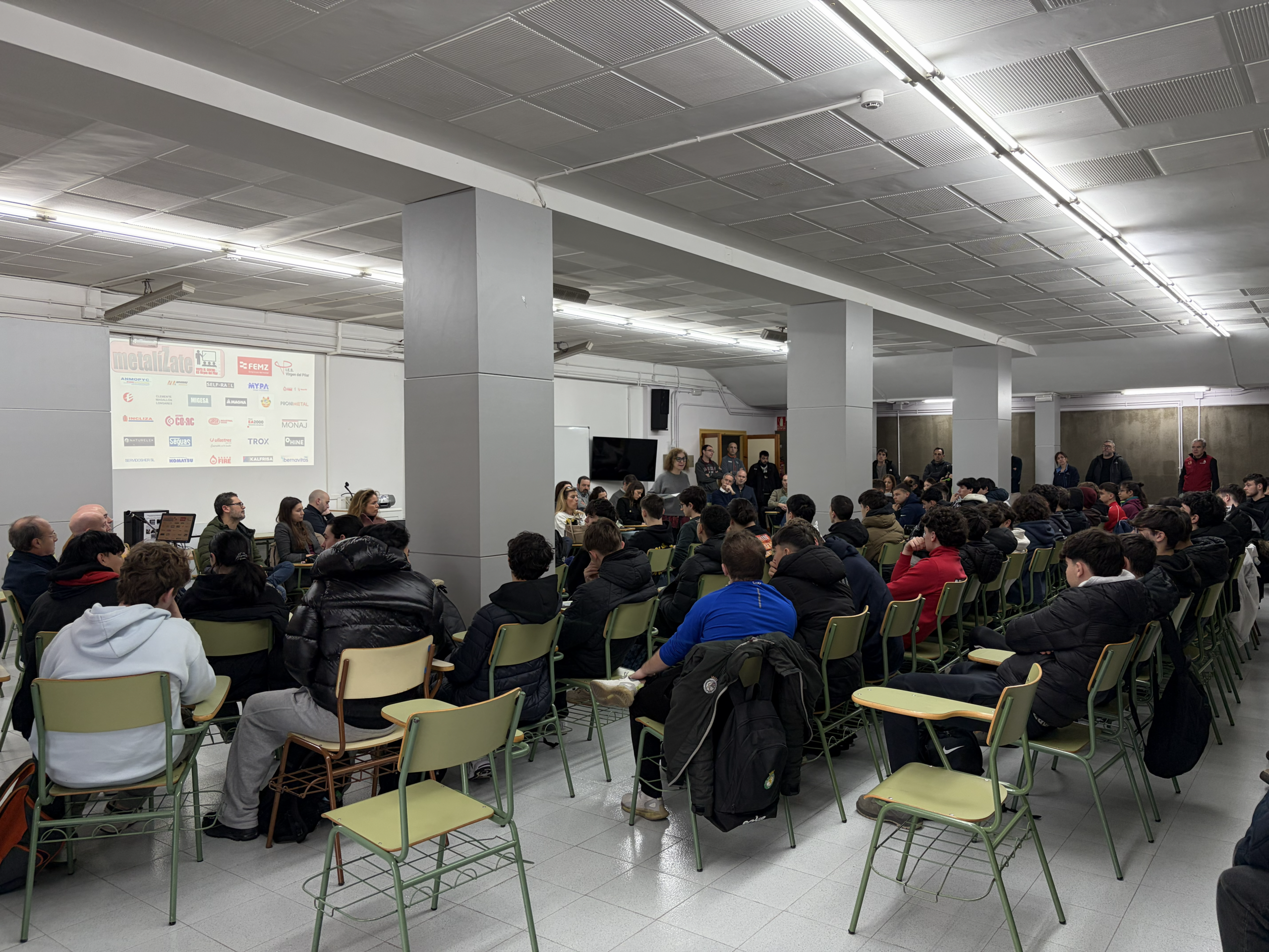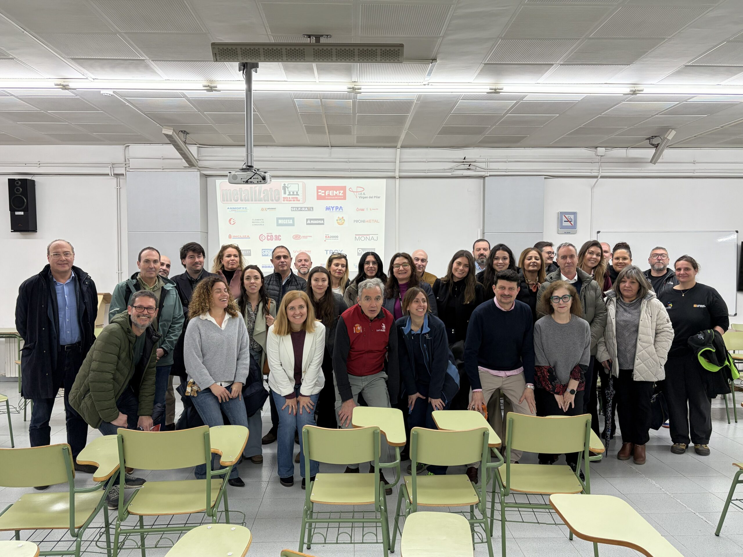En una iniciativa para acercar el mundo laboral a las aulas, los socios de FEMZ han visitado las instalaciones del I.E.S. Virgen del Pilar con el objetivo de conocer de primera mano cómo y dónde se forman los profesionales del futuro del sector del metal.